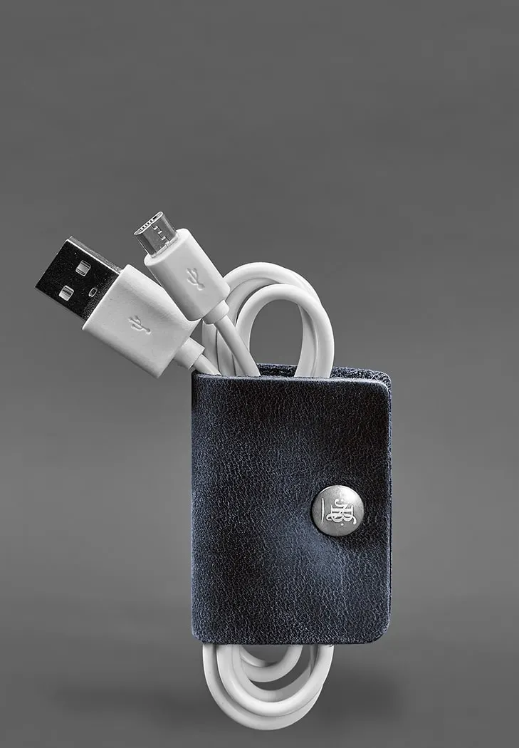 Шкіряний холдер для навушників та проводів 2.0 Синій