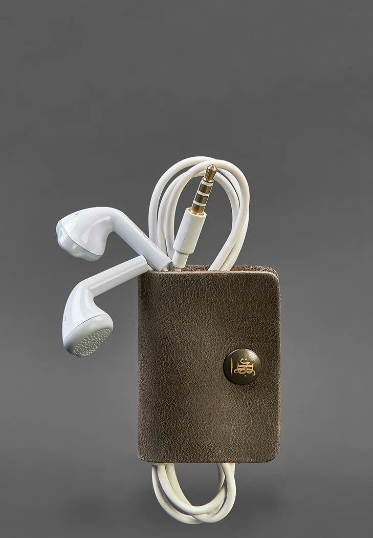 Шкіряний холдер для навушників та проводів 2.0 Темно-коричневий