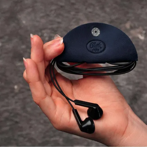 Шкіряний холдер для навушників та проводів синій