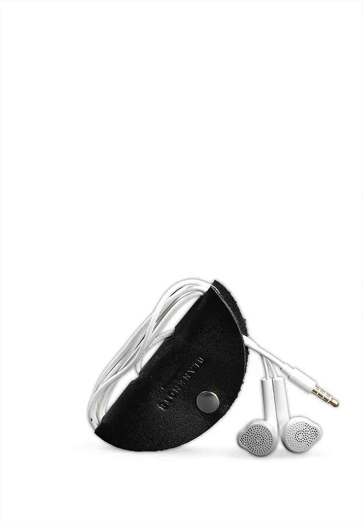Шкіряний холдер для навушників та проводів вугільно-чорний