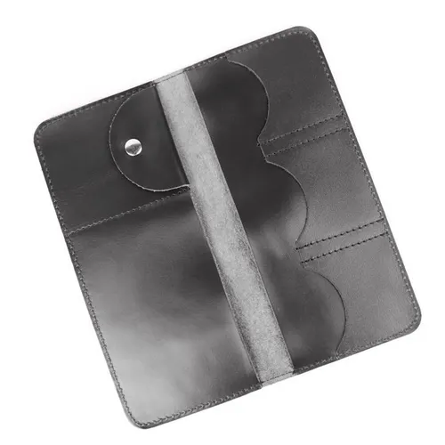 Шкіряний дорожній кейс чорний виконаний із натуральної шкіри високої якості, що забезпечує довгий термін служби та стильний зовнішній вигляд. Відрізняється зручним розміром: у закритому вигляді його габарити становлять 25х12 см, а у відкритому — 25х25 см, що робить його компактним і досить містким для всіх необхідних документів і аксесуарів.