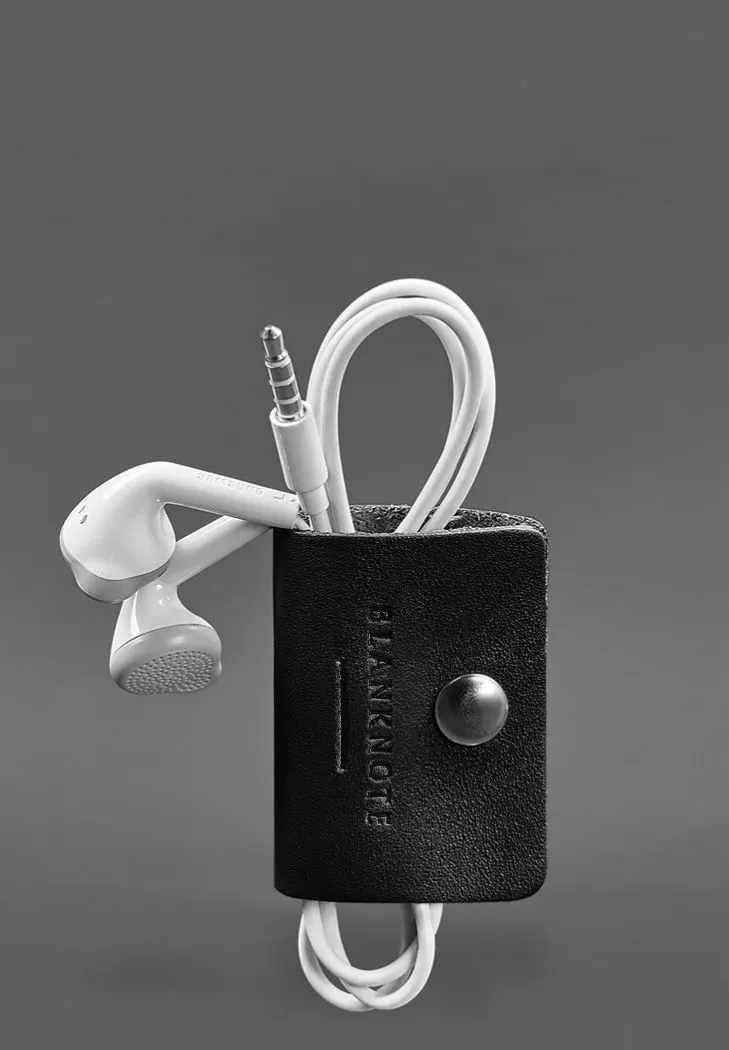 Шкіряний холдер для навушників та проводів 2.0 Чорний