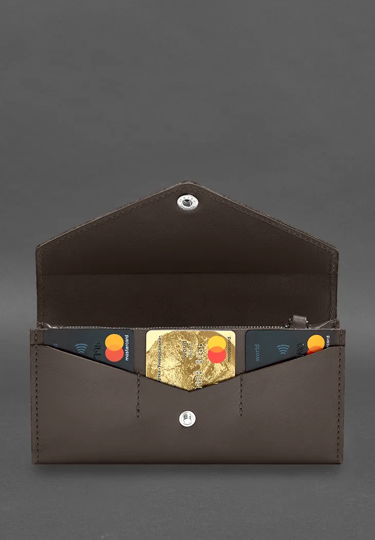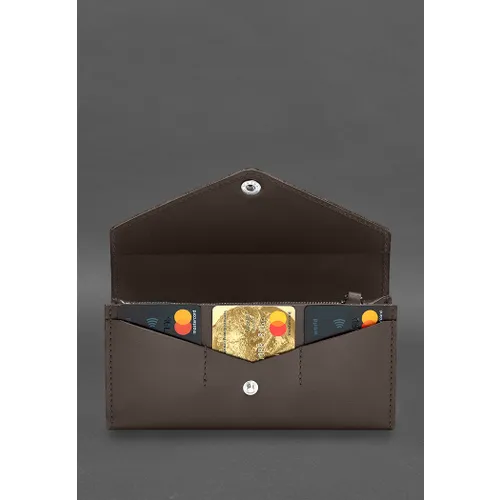 Шкіряний клатч (портмоне) на кнопці 5.0 виконаний із щільної та якісної натуральної шкіри, що гарантує його довгий термін служби та стійкість до зношування. Міцна фурнітура забезпечує надійність та довговічність використання. Цей аксесуар закриється на міцну кнопку, що додає зручність та безпеку.