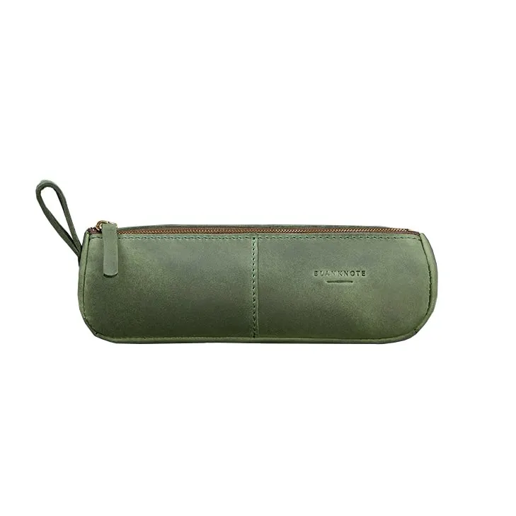 Пенал закривається на міцну металеву блискавку, що гарантує безпеку вмісту та зручність використання. Шкіряна петля збоку додає функціональності, дозволяючи легко витягати пенал із сумки або підвішувати його на гачок.