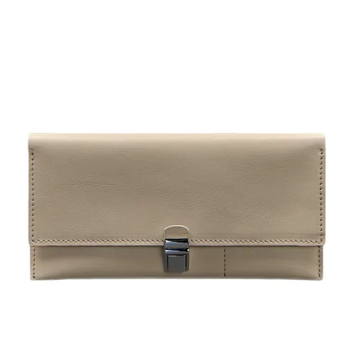 Виріб має габарити 12x24 см, оптимальні для зручного розміщення в сумочці або ручній поклажі, та оснащений портфельним замком, що забезпечує надійне закриття та збереження вмісту. Світло-бежевий відтінок виробу надає йому елегантності та універсальності, дозволяючи поєднувати з різними образами.
