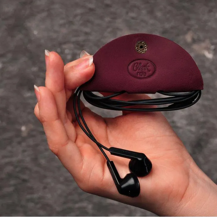 Шкіряний холдер для навушників та проводів бордовий