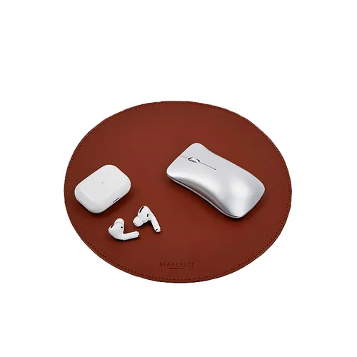 Круглий килимок для мишки виготовлений із натуральної шкіри світло-коричневого кольору — краст. Цей матеріал відрізняється високою міцністю, зносостійкістю та приємною тактильною поверхнею. Шкіряна основа забезпечує довговічність аксесуара та зберігає естетичний вигляд протягом тривалого часу.