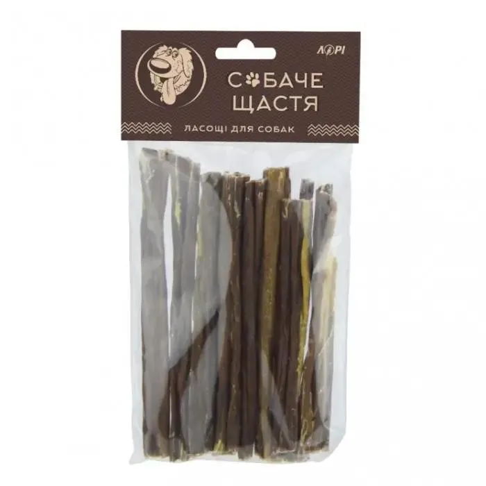 Характеристики "Ласощі для собак М'ясні палички сушені "Собаче щастя" 100 г (пакет)"