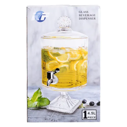Характеристики "Лимонадниця зі скляним краном 39 см 4,5 л прозора на підставці HP-19-3"