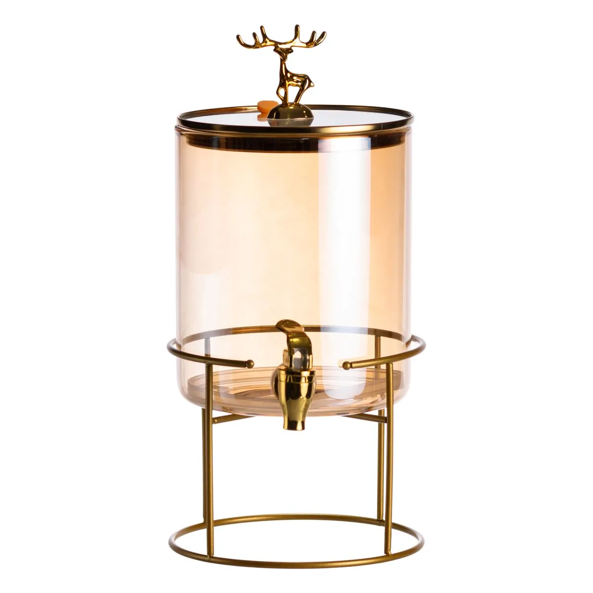 Лимонадниця скляна 3,6 л із золотим краном та підставкою кругла банкетна ємність для напоїв HP-34-18