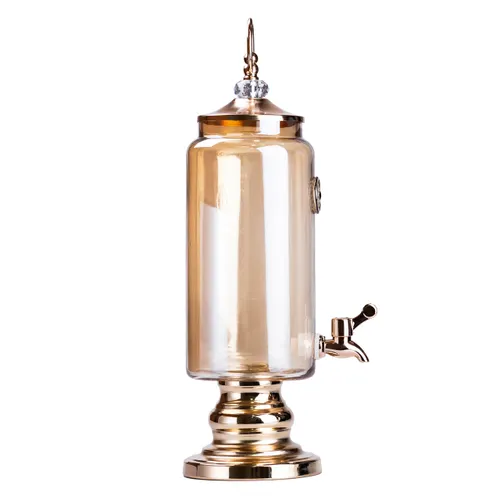 Вишуканий дизайн та металева ніжка роблять лимонадницю стійкою і зручною у використанні, а кран забезпечує легке та гігієнічне розливання напоїв без необхідності піднімати ємність. Ручна робота надає лимонадниці унікальність і високу якість виконання.