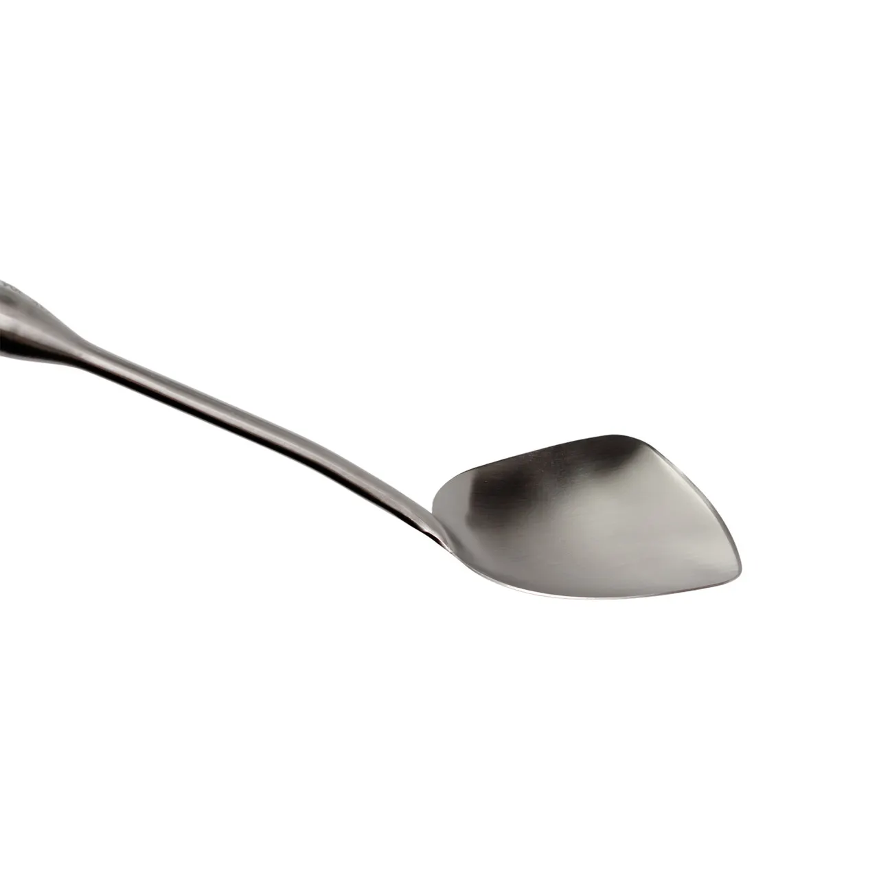 Робоча частина лопатки виготовлена з нержавіючої сталі, яка відзначається високою міцністю та стійкістю до високих температур. Цей матеріал не вбирає запахи і не зберігає залишки їжі, що сприяє підтриманню високих санітарних стандартів у кухонному посуді. Нержавіюча сталь також не ржавіє і не тріскається з часом, що розширює строк служби кухонного приладу.