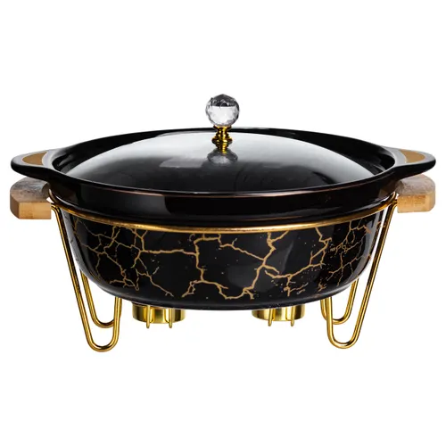 Марміт порцеляновий настільний круглий 2 (л) з підігрівом Чорний мармур LC-718