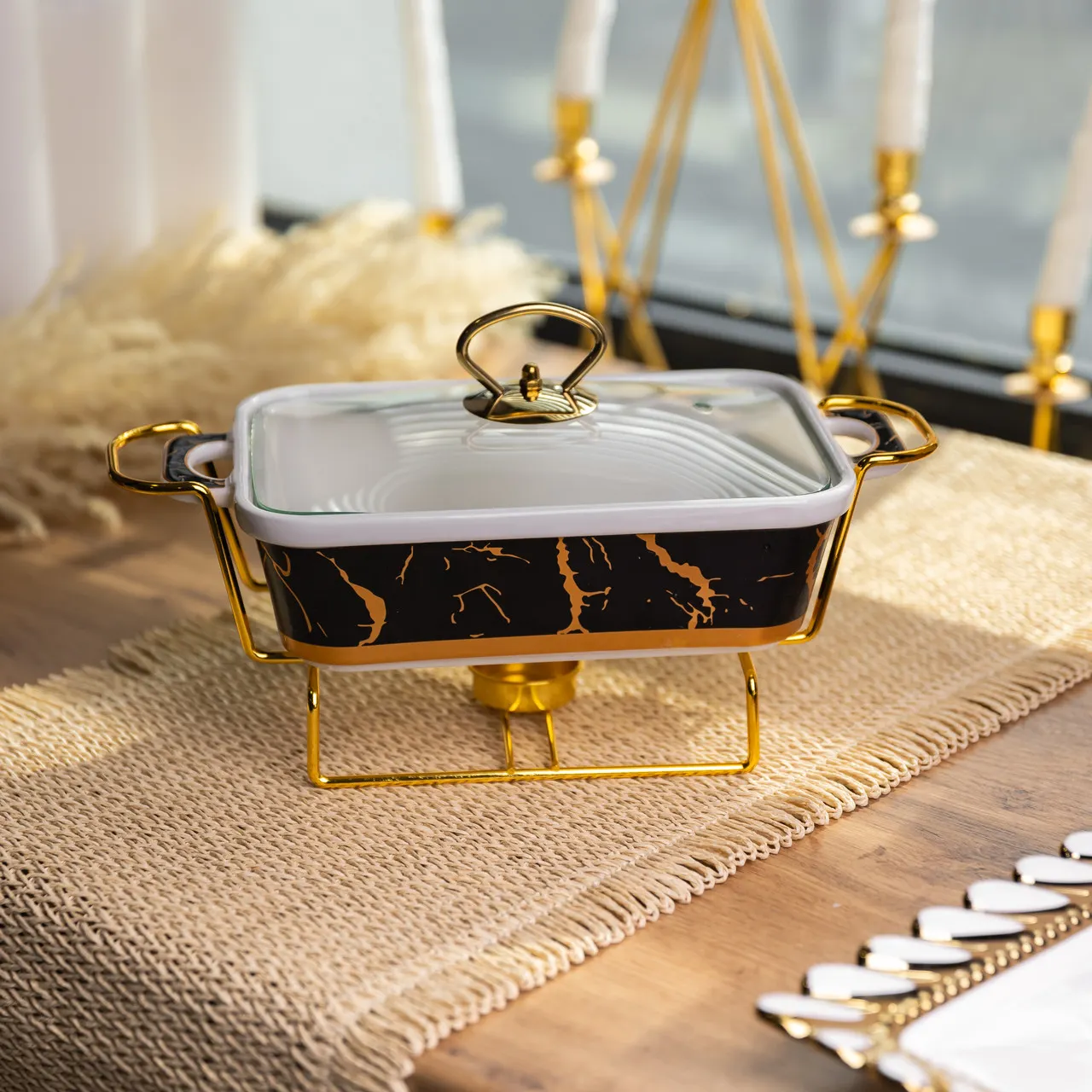 Марміт настільний прямокутний з підігрівом 31х16х11 см керамічний на металевій підставці з кришкою ML438-11