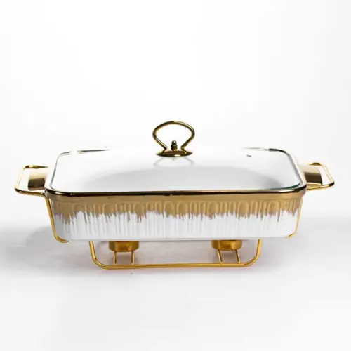 Мармітниця порцелянова 2 л на золотистій підставці з підігрівом 40х22.5х15.5 см ML-860-15