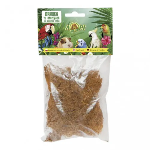 Матеріал для гнізда кокосове волокно - універсальний будівельний матеріал, природного походження, призначений для декоративних птахів, щоб облаштувати гніздечко в неволі. Використання натурального волокна гарантує комфорт та безпеку вашим вихованцям, допомагаючи створити умови, які максимально наближені до природних.