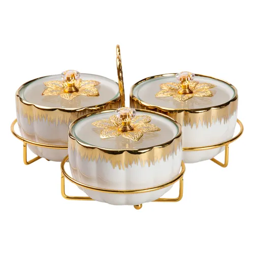 Менажниця керамічна на металевій підставці на 3 секції HP-1208