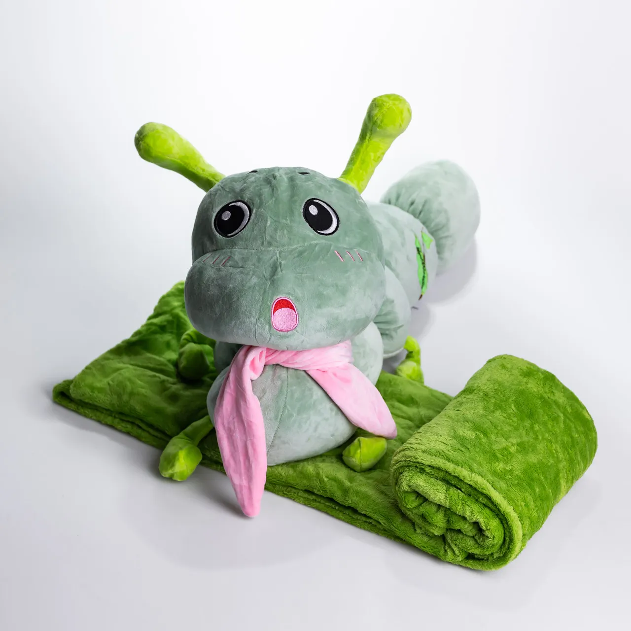 М'яка іграшка-подушка з пледом Гусениця 110×170 (см) плюшевий дитячий плед 3в1 Зелений 7127-GR