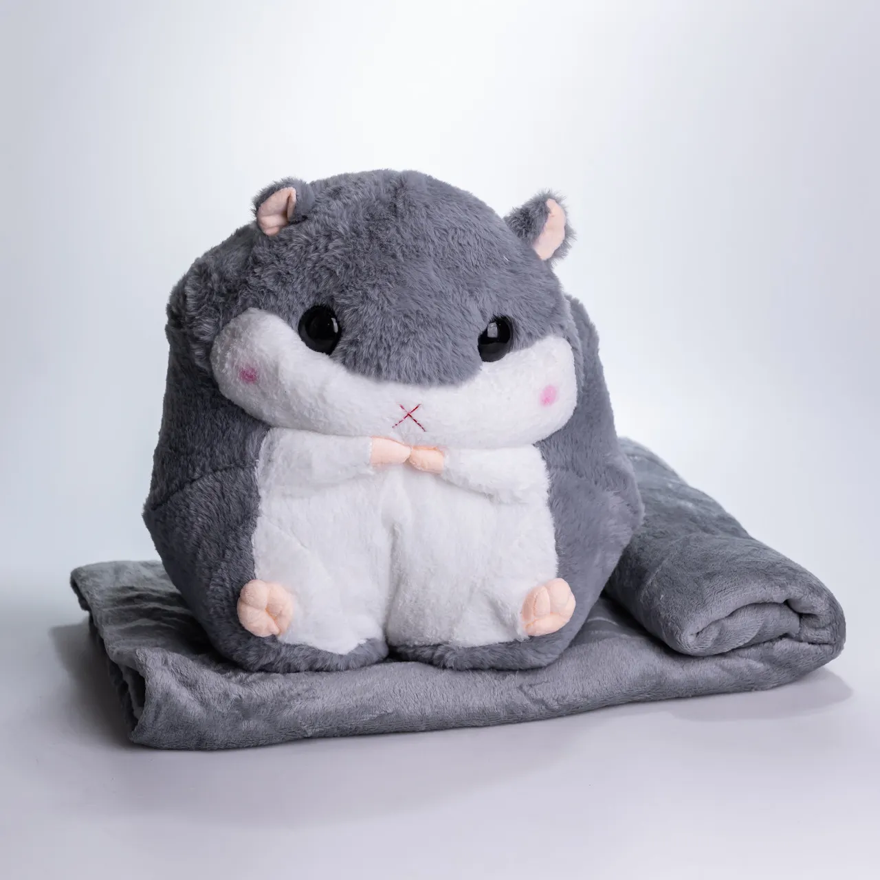 М'яка іграшка-подушка з пледом Хом'як 110×160 (см) плюшевий дитячий плед 3в1 Сірий 7090G