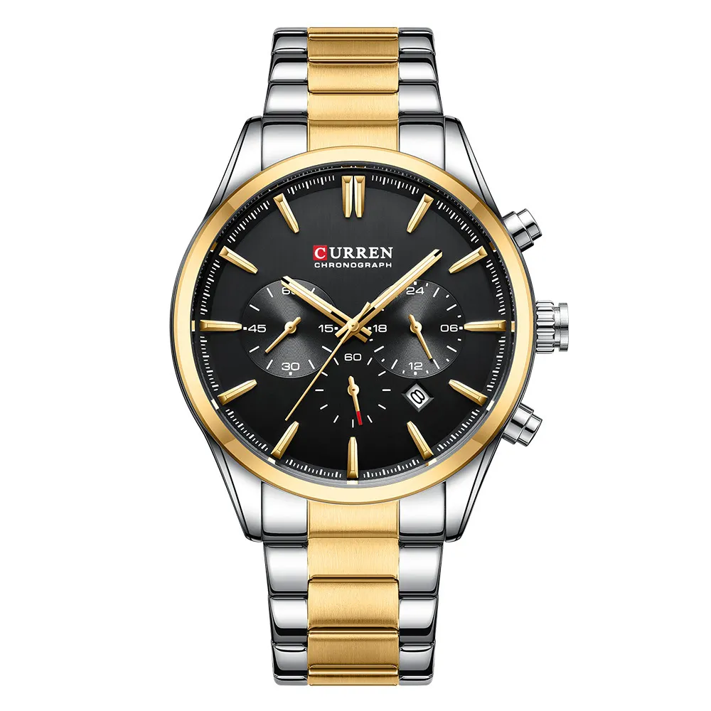 Чоловічі годинники Curren 8446 Silver-Gold-Black поєднують в собі елегантний дизайн та продуманий функціонал, що ідеально підходить для щоденного використання. Зовнішній вигляд вирізняється гармонійним поєднанням золотистого та сталевого відтінків, а металевий браслет надає виробу солідності та завершеності. Розміри корпусу становлять 44 х 44 мм, що забезпечує хорошу читабельність циферблату без надмірної масивності на зап’ясті.