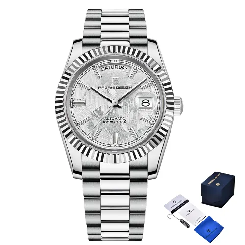 Корпус моделі Pagani Design PD-1783 виконаний із високоякісної нержавіючої сталі — матеріалу, який забезпечує довговічність та стійкість до корозії. Діаметр корпусу становить 40 мм при товщині близько 40 мм, що гарантує комфортне носіння на чоловічому зап’ясті. Сапфірове скло відрізняється міцністю і стійкістю до появи подряпин, що зберігає бездоганний зовнішній вигляд годинника навіть при інтенсивному використанні.
