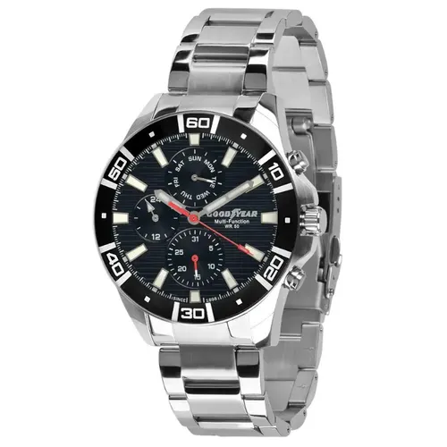 Корпус годинника виготовлений з нержавної сталі діаметром 46 мм та має сріблястий відтінок, що підкреслює стриманість і вишуканість виробу. Завдяки кварцовому механізму годинник демонструє високу точність ходу та довговічність, а мінеральне скло захищає циферблат від подряпин і механічних пошкоджень.