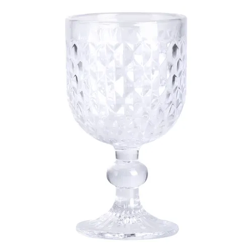 Набір келихів для вина з 6 штук по 220 мл являє собою якісний посуд із прозорого скла з елегантним дизайнерським виконанням. Кожен келих оснащений широкою чашею з плавними декоративними вигинами і має стійку низьку ніжку, що підвищує зручність і практичність при використанні.