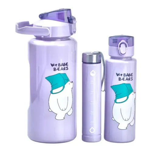 Набір пляшок 3 в 1 Панда з поїлкою і ручкою 0.3 (л) 0.7 (л) 2 (л) Фіолетовий HPZSB120014V