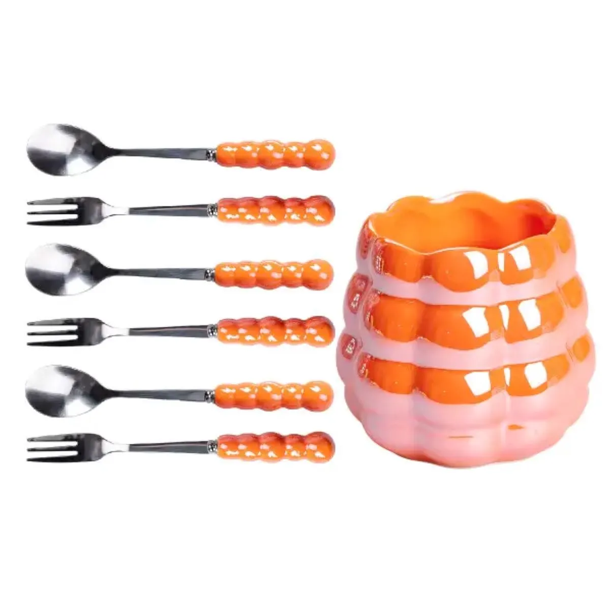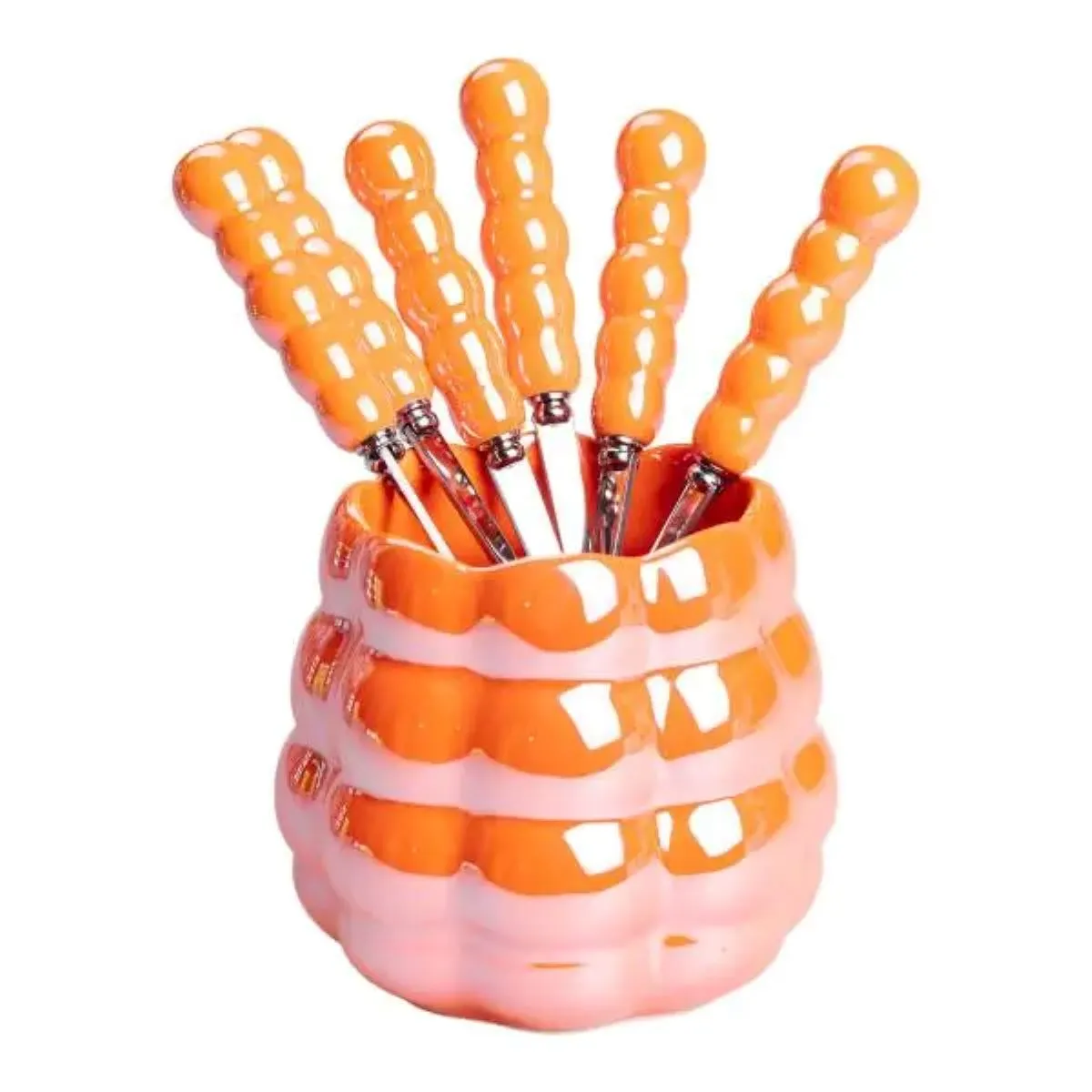 Набір десертних виделок і ложок на 3 персони з підставкою з кераміки 7 предметів Помаранчевий HP-20-60