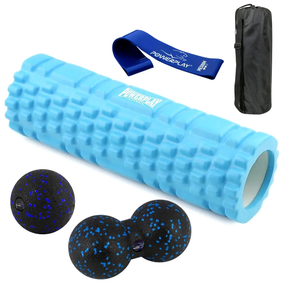 Набір для масажу та йоги PowerPlay PP_4097 (Ролик 30*10+2-ва м'ячі) Blue+гумка 7.5 кг. – ідеальне рішення для тих, хто прагне розслаблення та оздоровлення м'язів. Цей комплект допоможе вам впоратися зі втомою, покращити кровообіг та підвищити гнучкість тіла.