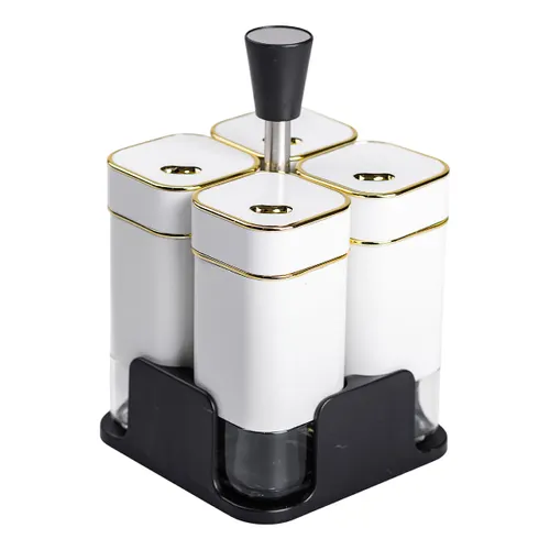 Набір для спецій на підставці 4 предмети 10х10х17 см ємності для приправ 120 мл Білий HP-1312