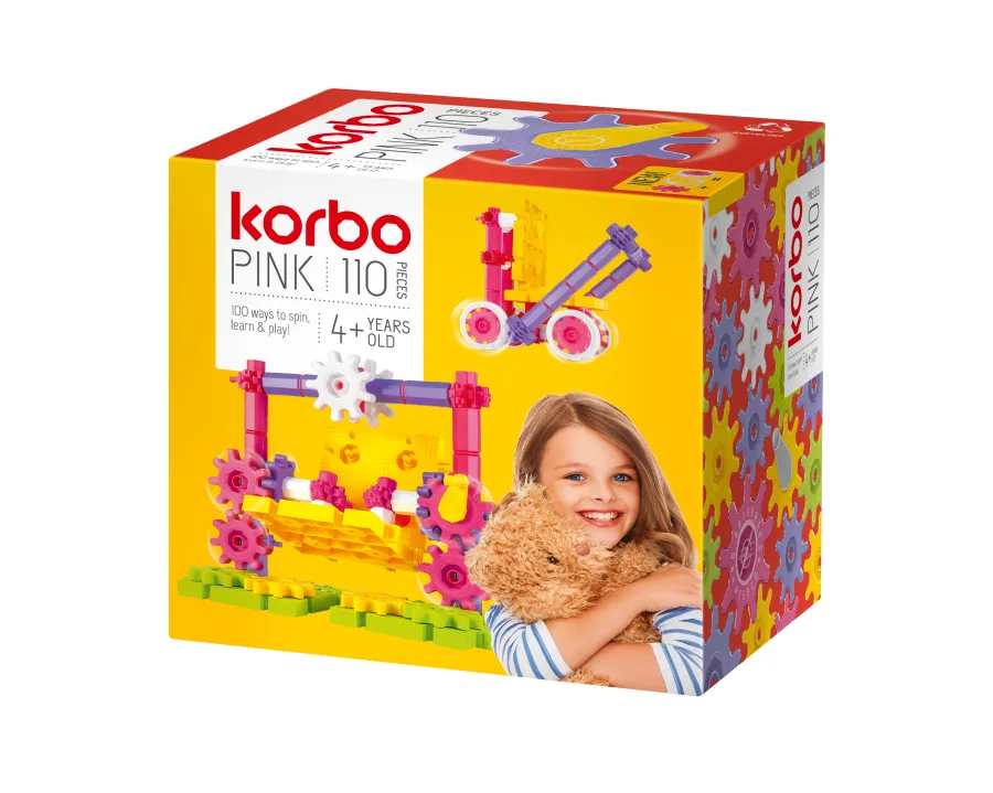 Набір для творчого конструювання Korbo "Pink" містити 110 деталей та розрахувань на дітей, які виявляють зацікавлення у творчості у сфери інженерії. Цей набір поєднуває в собі лементі гри та розвитку логічного мислення завдяки своїм унікальним конструктивним ялівцям.