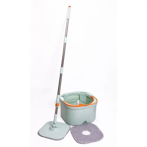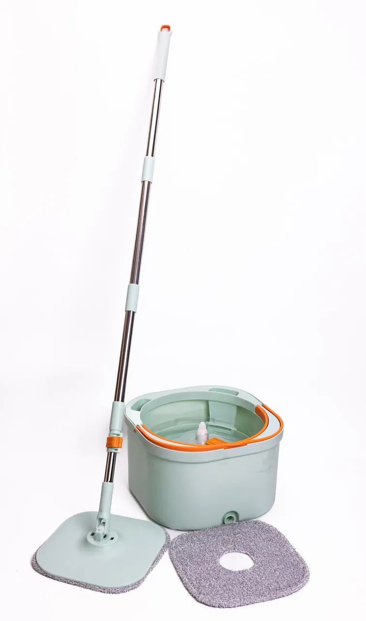 Цей комплект призначений для ефективного та комфортного догляду за підлогами. У нього входить швабра з металевою телескопічною ручкою та відро з вбудованим механізмом для віджиму. Ручка регулюється по довжині від 118 до 138 см, що дозволяє підлаштувати інструмент під зріст користувача для зручної роботи без зайвого нахилу. Верхня частина ручки оснащена петлею для зручного зберігання швабри у вертикальному положенні.