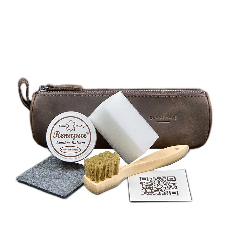У набір входять: бальзам Renapur об'ємом 60 мл — засіб, який глибоко зволожує та відновлює структуру шкіри, повертаючи їй еластичність та захист від зовнішніх впливів. М'яка щітка з дерев'яною ручкою призначена для делікатного очищення поверхні, видаляючи пил та забруднення, не ушкоджуючи натуральний матеріал.
