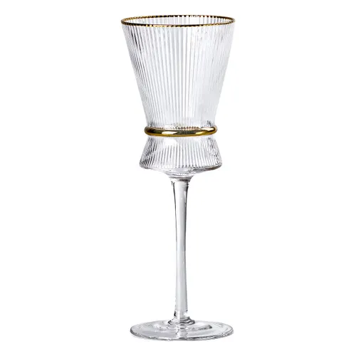 Висота келиха становить 23 см, що робить їх зручними для утримання та естетично привабливими на столі. Золотий обідок на краю надає наборам розкішний і святковий вигляд, підкреслюючи увагу до деталей і створюючи атмосферу особливої події. Такий комплект буде доречним як для офіційних заходів, так і для затишних домашніх вечерь.