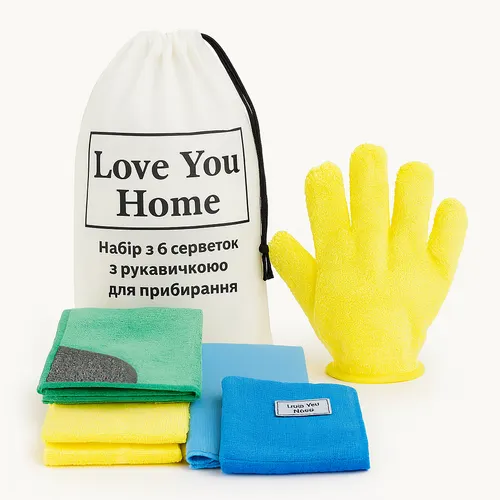 Характеристики "Набір з 6 серветок з рукавичкою для прибирання “Швидке прибирання пилу та блиск скла” LoveYouHome"