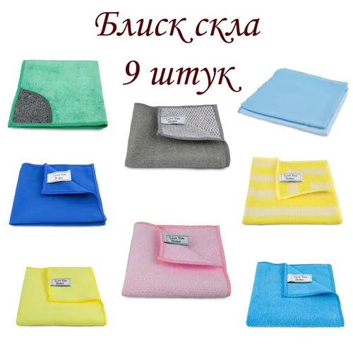 Характеристики "Набір з 9 серветок для прибирання "Блиск скла" LoveYouHome"