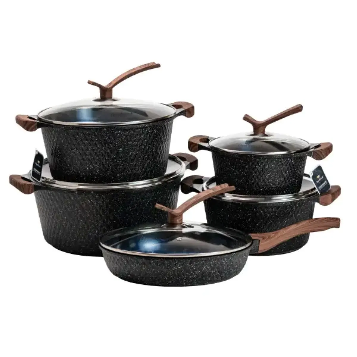 Гранітне антипригарне покриття даного набору не впливає на смак продуктів і не виділяє шкідливих речовин у процесі нагрівання. Завдяки своїй структурі воно перешкоджає пригоранню страв і дозволяє готувати з мінімальним використанням олії, що позитивно позначається на якості та калорійності їжі.