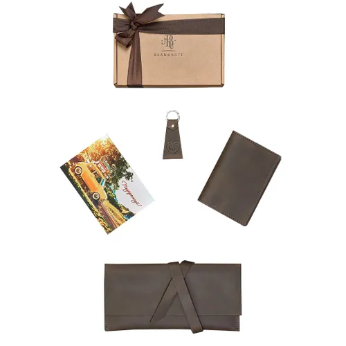 Кожен аксесуар має елегантне матове покриття, виготовлений з міцної шкіри Crazy Horse, що забезпечує тривалий термін служби та привабливий зовнішній вигляд. Всі елементи стильно упаковані в крафтову коробку з атласною стрічкою готовий презент —, що не вимагає додаткового оформлення.