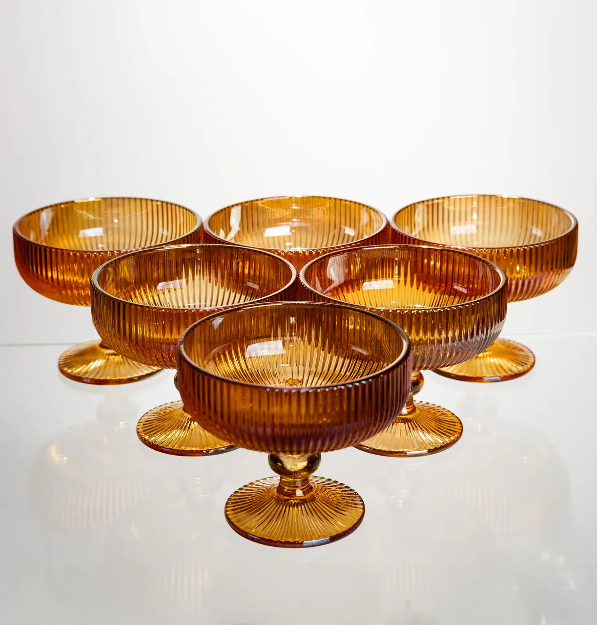 Характеристики "Набір креманок на ніжці 6 штук 340 мл скляні Бурштиновий Yiwu HP-19-212"