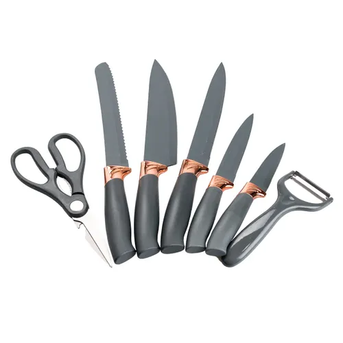 До набору входять: кухарський ніж довжиною 33 см, ніж для хліба 23,5 см, ніж для м'яса 24,5 см, універсальний ніж і ніж для нарізки 19,5 см, а також кухонні ножиці та овочечистка. Такий набір покриває більшість потреб при приготуванні їжі, дозволяючи виконувати нарізання, різання, очищення без перемикання між різними пристроями.