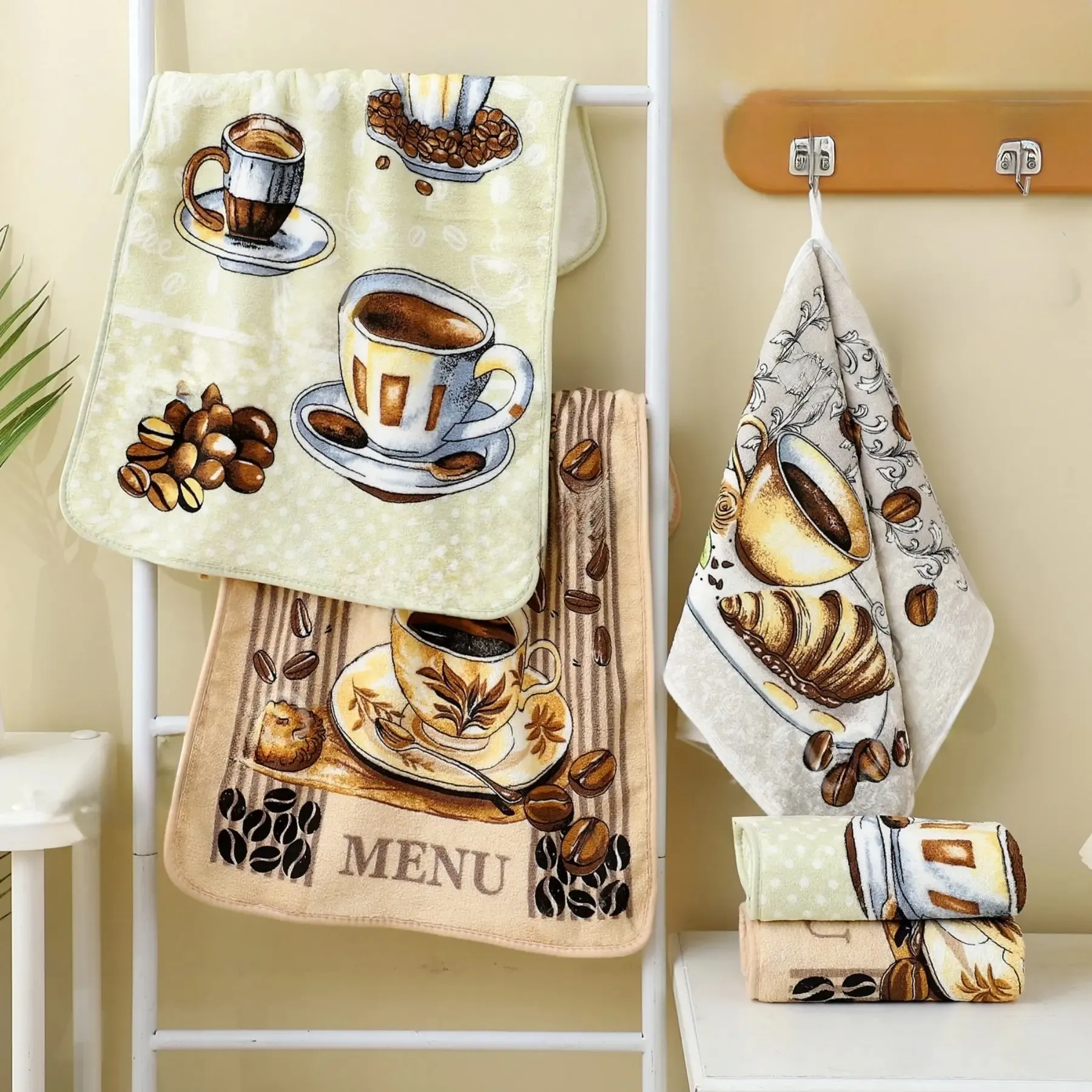 Привабливий дизайн з тисненим малюнком у вигляді філіжанки кави додає елемент декору і робить рушники стильним доповненням для будь-якої кухні. Вони не тільки функціональні, але й надають вишуканості вашому кухонному інтер'єру.