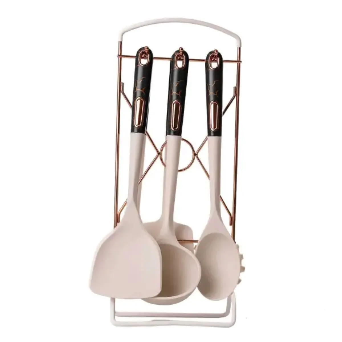 Характеристики "Набір кухонного приладдя на підставці 6 штук кухонні аксесуари Бежевий із чорною ручкою YRUR4"