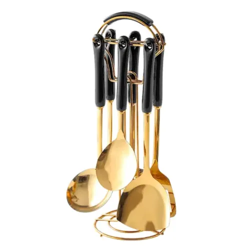 Набір кухонного приладдя на підставці 7 предметів кухонні аксесуари на підставці Чорний із золотом HP-20-66