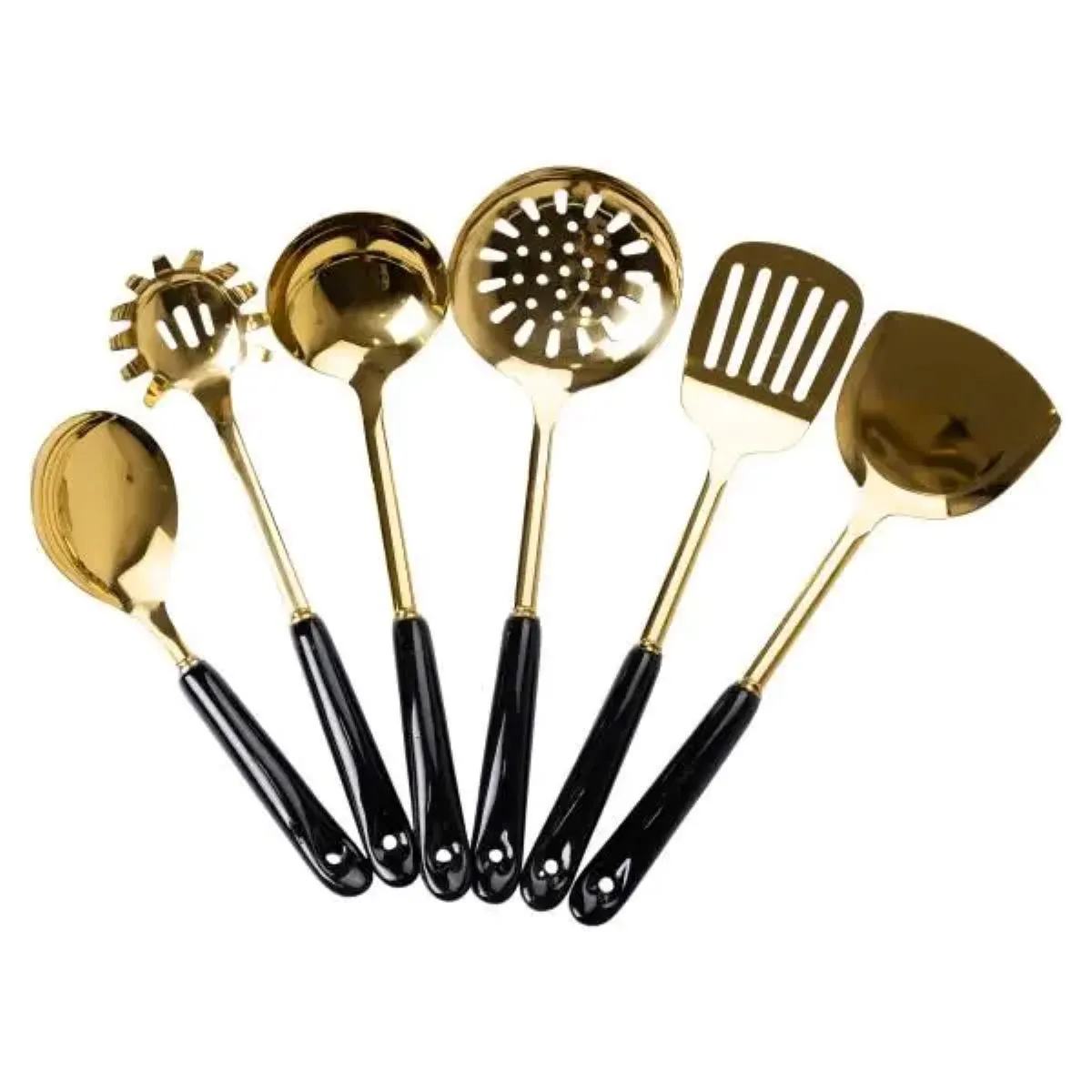 До комплекту набору входять основні предмети, необхідні для приготування та подачі найрізноманітніших страв: дві лопатки (одна з прорізом), половник, шумівки різного типу, ложка для спагетті та поварська ложка. Кожен виріб має своє застосування, дозволяючи вирішувати широкий спектр завдань на кухні - від перемішування і зачерпування до сервірування їжі.