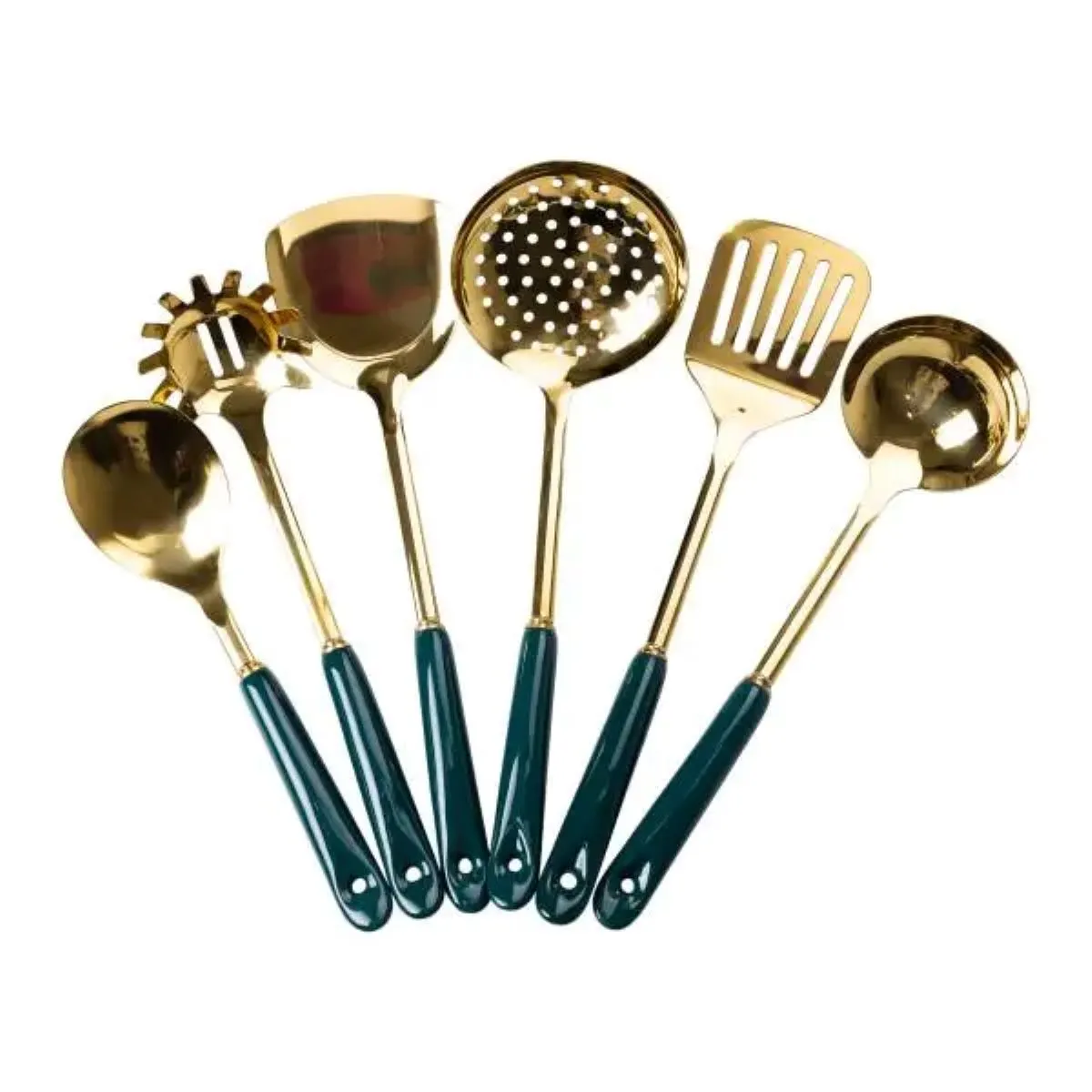 У комплекті знаходяться сім різних приладів, які охоплюють основні потреби на кухні. До набору входять дві кухонні лопатки (одна з яких з прорізом), шумівка, шумівка для спагетті, поварська ложка, ополоник та спеціальна ложка для спагетті.