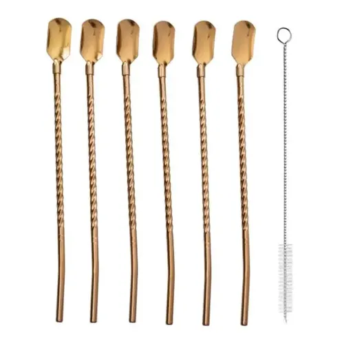 Характеристики "Набір багаторазових ложок-трубочок 6 шт для напоїв 22 см зі щіткою для миття з нержавіючої сталі Бронзовий HP-20-20"