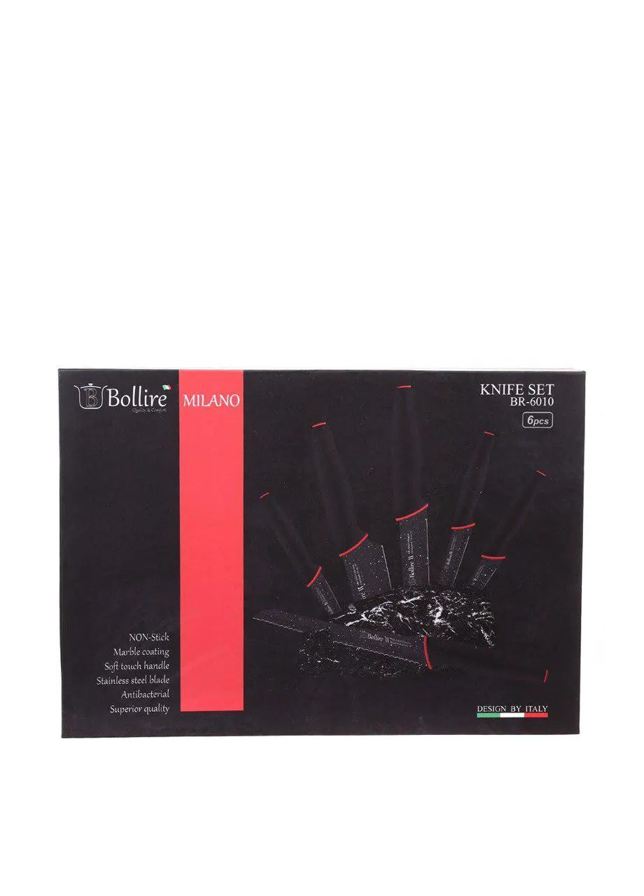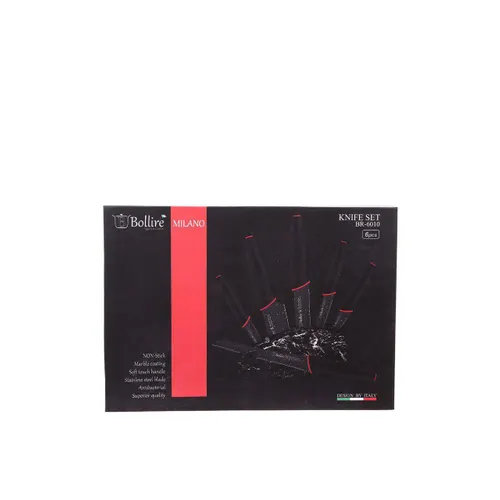 Набір ножів MILANO BOLLIRE включає шість предметів, кожен з яких виконаний з якісної нержавної сталі SS420 з унікальним мармуровим покриттям. Таке покриття підвищує зносостійкість і запобігає корозії, зберігаючи зовнішній вигляд виробів довгий час.