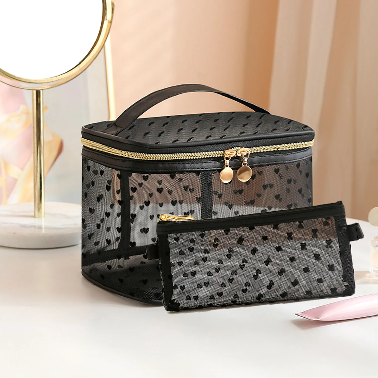 Набір прозорих органайзерів-косметичок LoveYouHome включає два вироби: велику косметичку розміром 14х21х14 см та маленьку — 10х19 см. Цей стильний та зручний комплект задовольнить усі ваші потреби в організації та зберіганні. З прозорою структурою та сучасним дизайном ці органайзери ідеально підійдуть як для повсякденного використання, так і для поїздок.