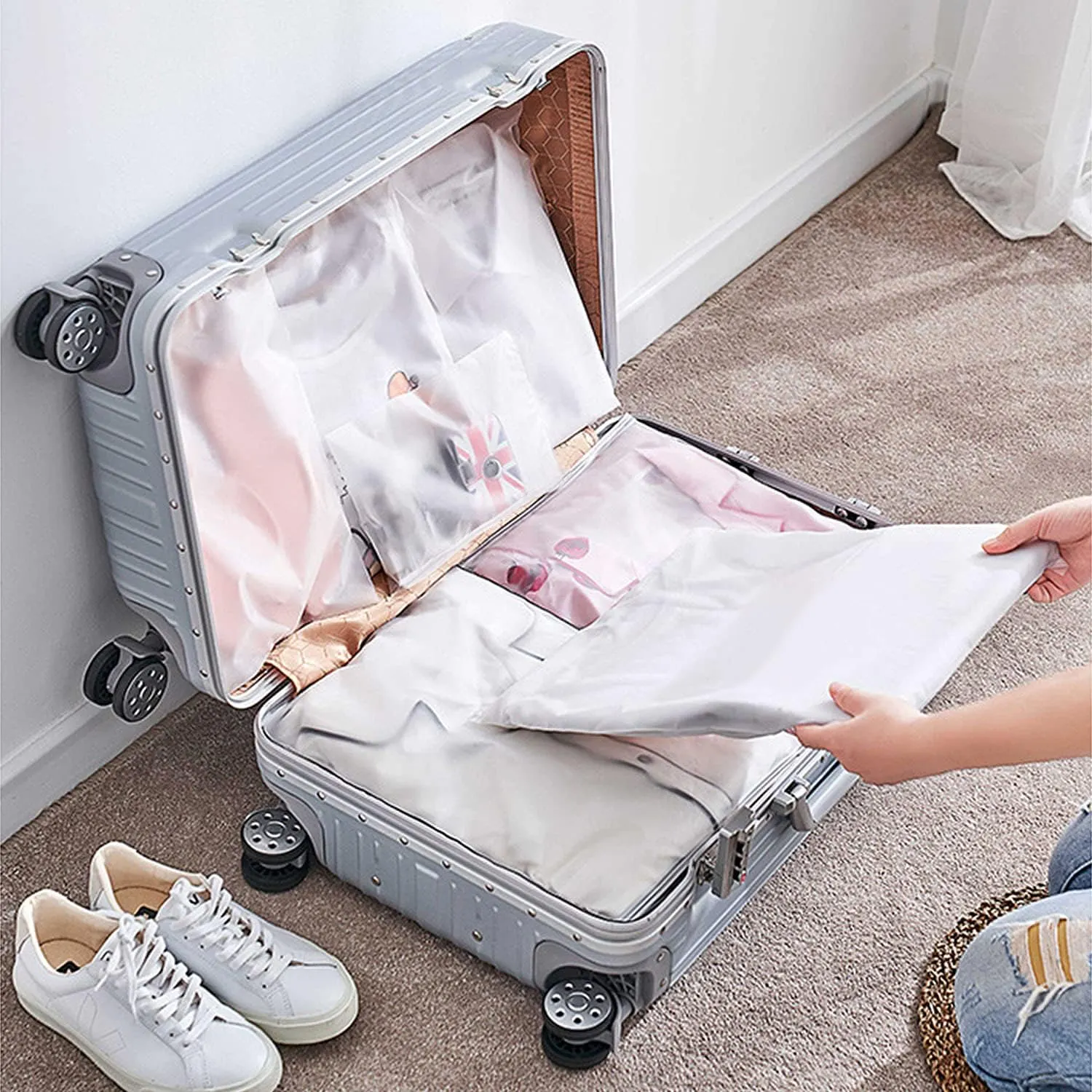 До складу набору входять три універсальних розміри, які підходять для різних завдань зберігання. Великі пакети 35 × 45 см ідеально підходять для одягу, постільної білизни, дитячих речей та м’яких іграшок. Середні пакети розміром 30 × 40 см підходять для спортивної форми, взуття та тканин для рукоділля, а маленькі 20 × 30 см призначені для зберігання косметики, аксесуарів, документів та невеликих продуктів харчування — снеків.